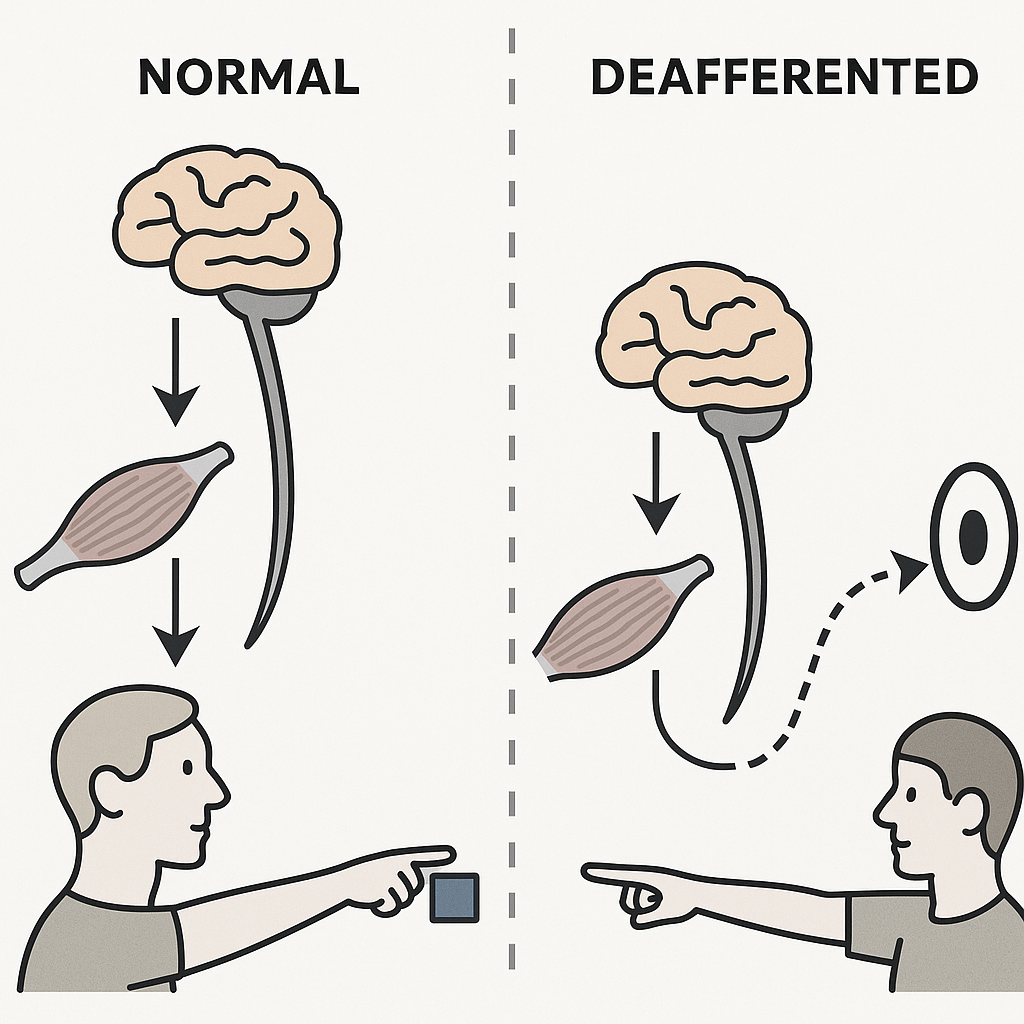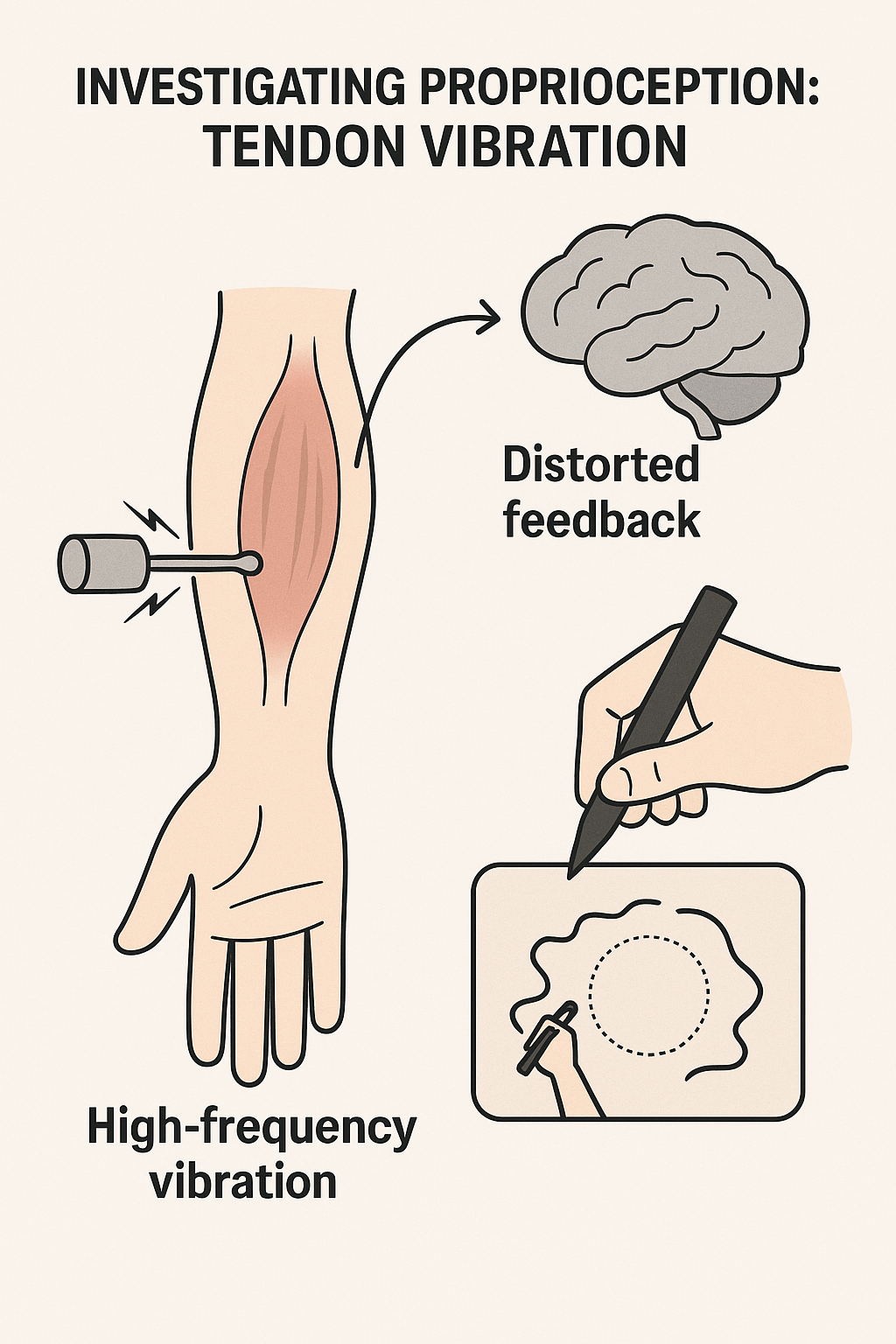 🧪 Classic methods: deafferentation (loss of afferents) and tendon vibration (illusory lengthening) reveal proprioception’s role