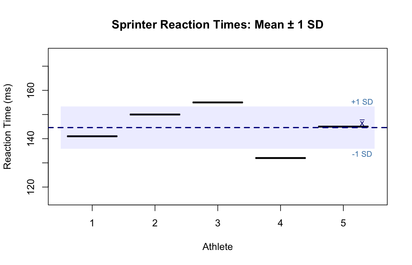 • Report sample size (\(n\)) explicitly, as the same SD carries very different weight depending on whether \(n = 10\) or \(n = 1{,}000\).