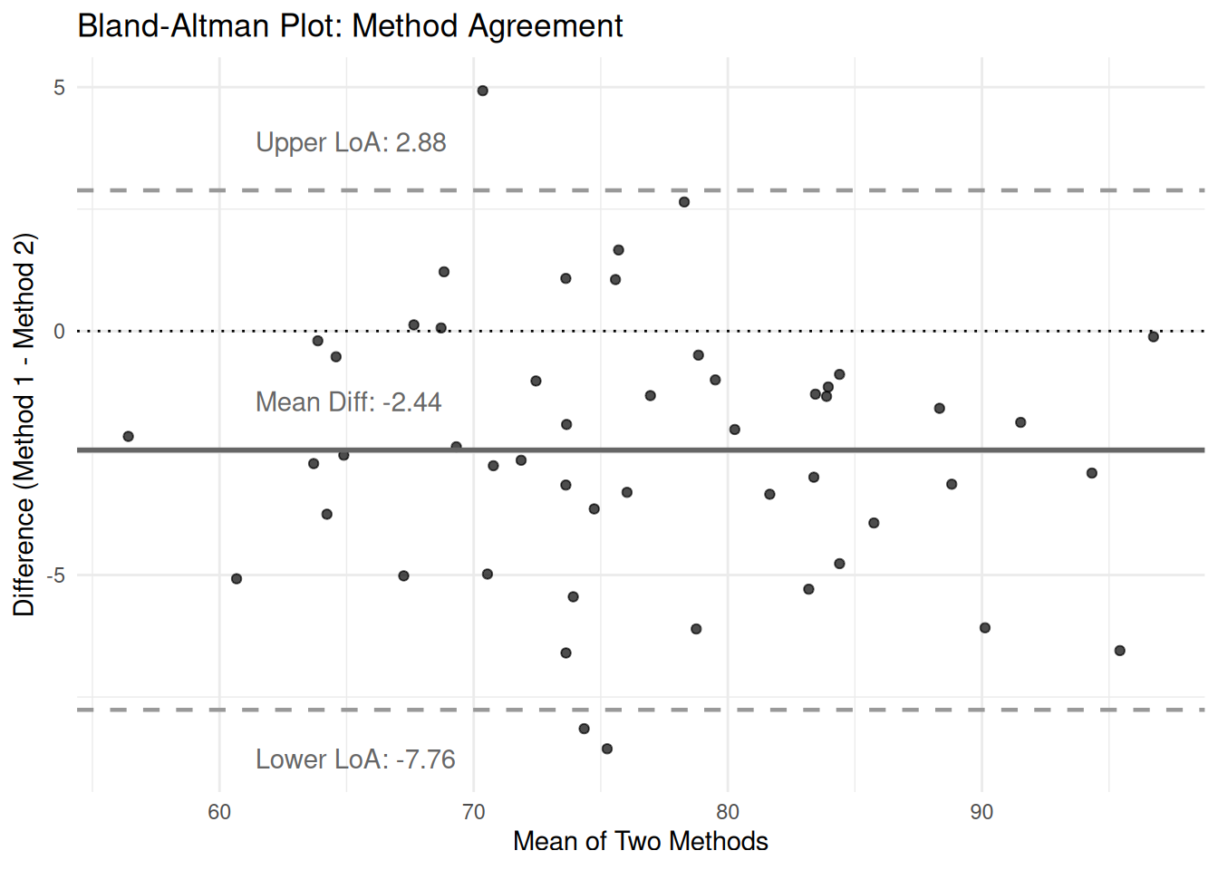 labs(title = "Bland-Altman Plot: Method Agreement",