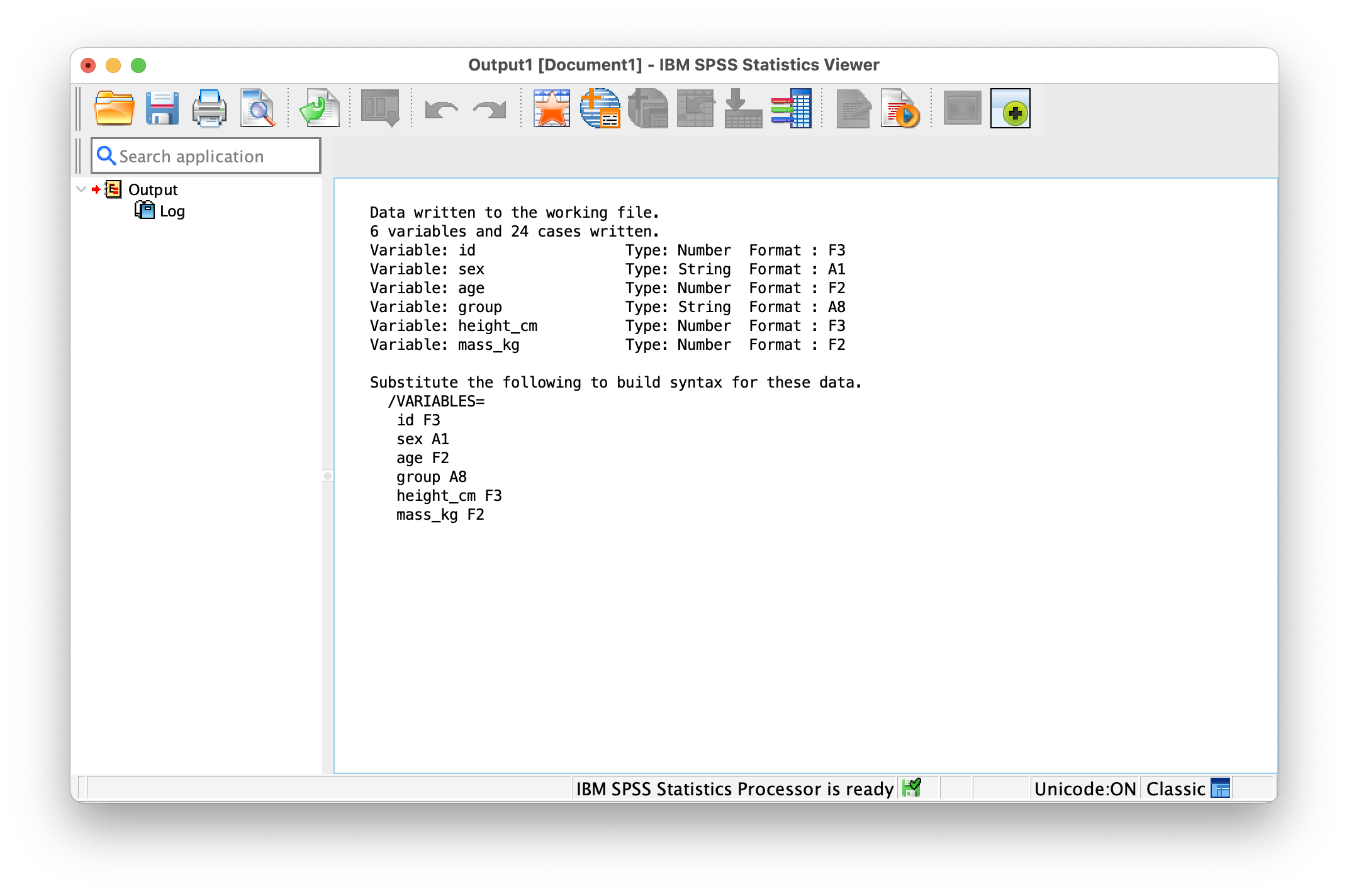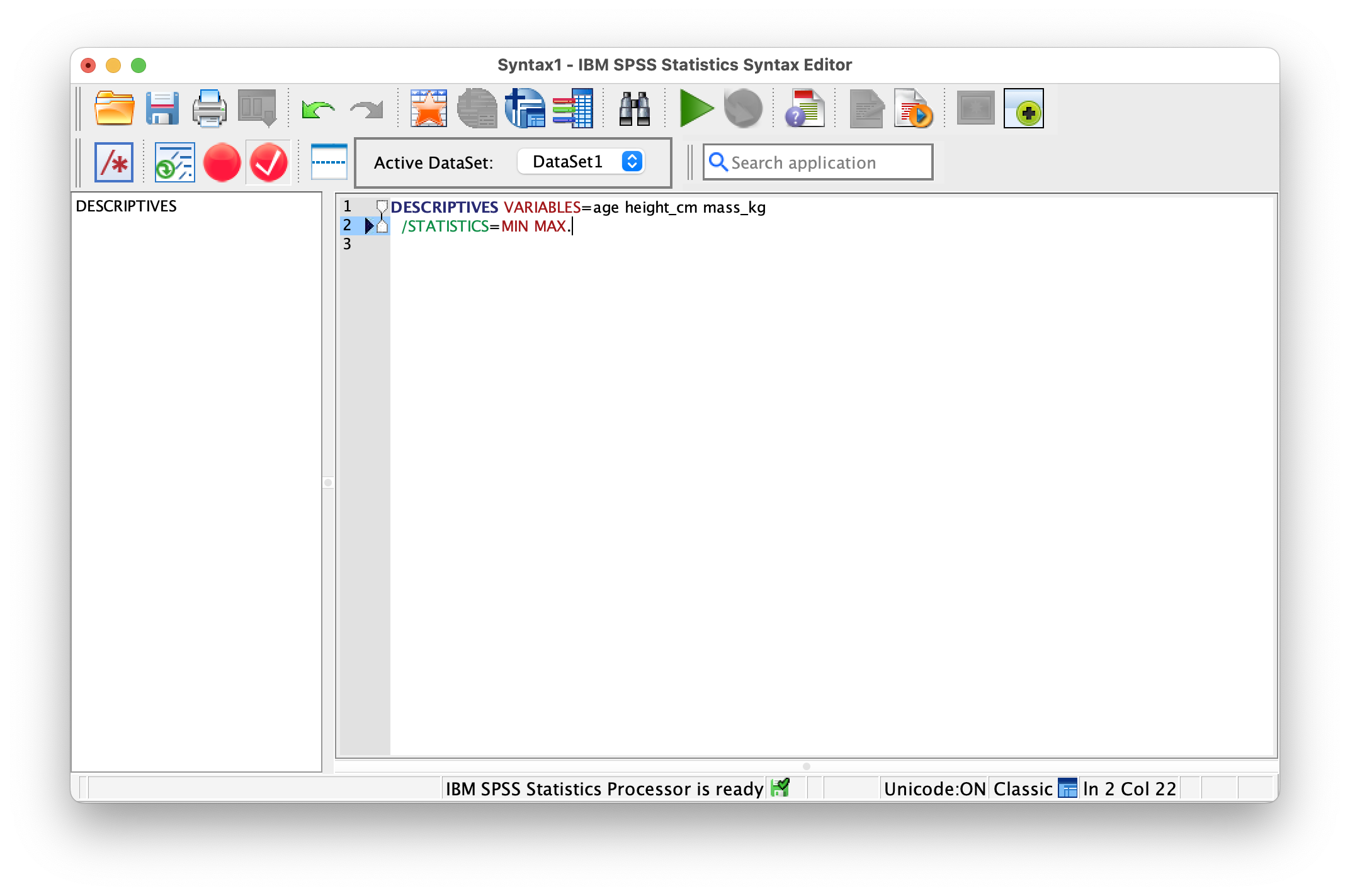 To run your syntax commands, highlight the lines you want to execute (or leave everything highlighted to run the entire file), then click the Run button (green arrow) in the toolbar or use the keyboard shortcut Cmd+R on Mac or Ctrl+R on Windows. SPSS will process your commands in order and generate output in the Output Viewer. An important note: after any commands that modify your data (like Compute, Recode, or Select If), include the EXECUTE. statement to tell SPSS to finalize the changes before moving to the next step. Some users add EXECUTE. at the end of every section for extra clarity.